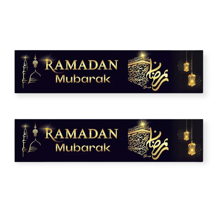 Decorate your Ramadan celebration with our Black Ramadan Mubarak Pack. This pack includes 2 banners, creating a festive and stylish atmosphere. Perfect for adding a touch of elegance to your special occasion. Elevate your decorations with our carefully curated pack.