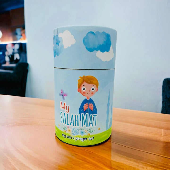 Cylinder Gift Box For Children With Prayer mat, Tasbeeh & Prayer