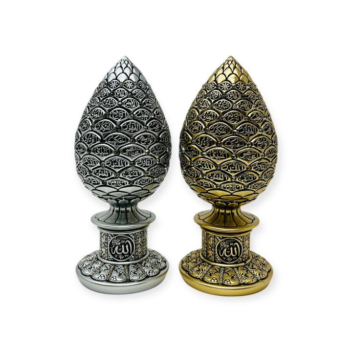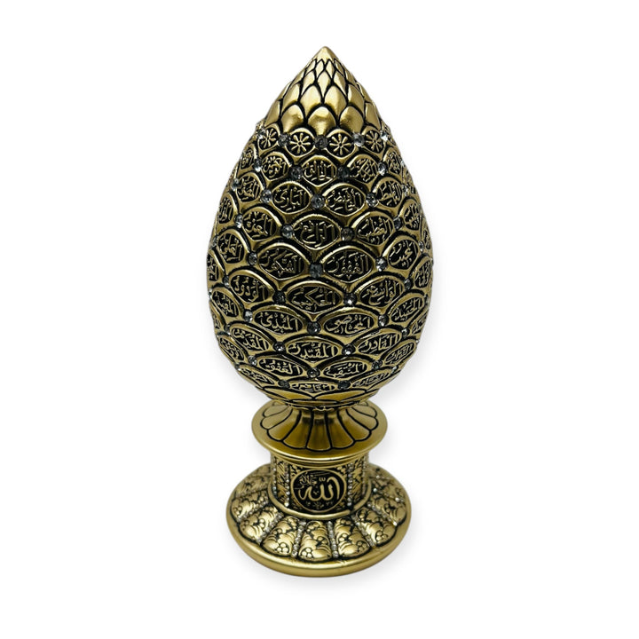 Islamic Table Decor – Golden Pine Cone with Blue Stones | 99 Names of Allah