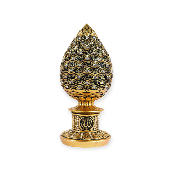 Islamic Table Decor Golden pine cone with Blue stones - 99 Names of Allah Alif collection BB-0913-1631