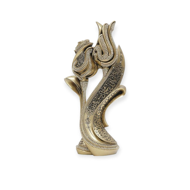 This Muslim showpiece features the Rose (Muhammad) and Tulip (Allah), with inscription of the Tawhid (declaration of oneness of Allah).