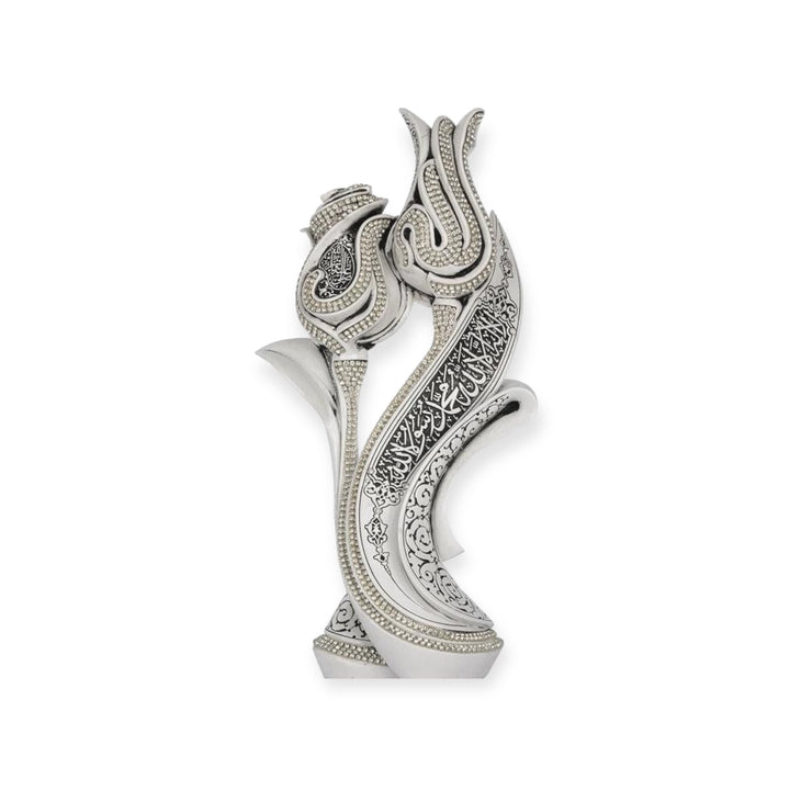 A beautiful and one of a kind Islamic home decor showpiece that features the Rose (Muhammad) and Tulip (Allah), with an inscription of the Tawhid (declaration of oneness of Allah).
