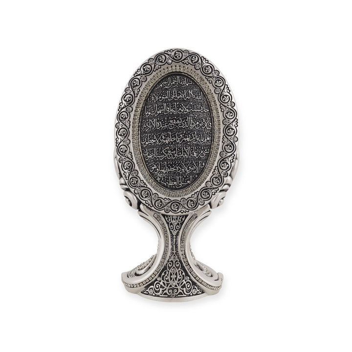 A beautiful and one of a kind oval-shaped table decor piece inscribed with Ayatul Kursi in Arabic calligraphy.