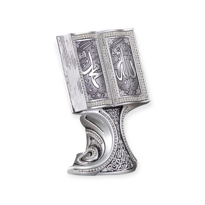 Islamic Table Decor Quran Open Book with Allah & Muhammad Gold/Silver/Pearl (Medium)