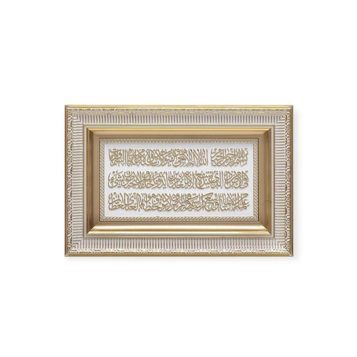 White and gold colour Islamic Wall Art Ayatul Kursi frame 28 x 43cm ca-0601